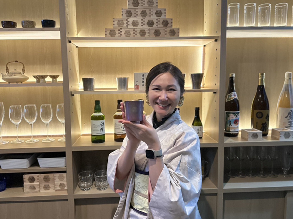 • 紹介 鹿児島伝統工芸「大島紬」の着物を着用したママがおもてなし。